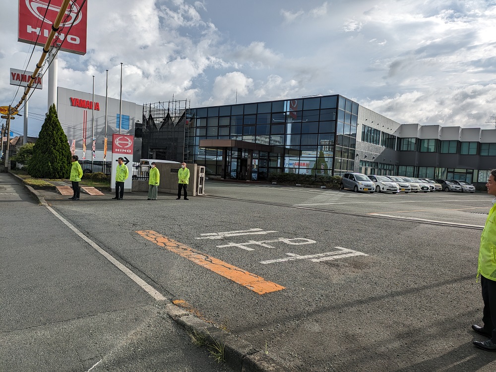 2023.09.21 お知らせ 秋の交通安全運動が始まりました 9/21(木)~9/30(土)の10日間で秋の全国交通安全運動が行われます。 当社でも国道3号線沿いにPR旗を立て、地域の方々への推進運動をしています。 初日の今日は社員が本社入り口に立ち、通勤する社員や地域の方々に向けて、交通安全啓蒙活動を行いました。 常日頃より心がけている安全運転の意識を、この期間はより強く持ってまいります。 シェアする 一覧へ戻る 前の記事へ 次の記事へ